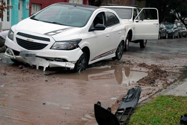 Minutos más tarde, ocurrió el segundo caso sobre calle San Jerónimo al 4.300. En ese sector, un Chevrolet Onix color blanco también terminó dentro de un pozo.