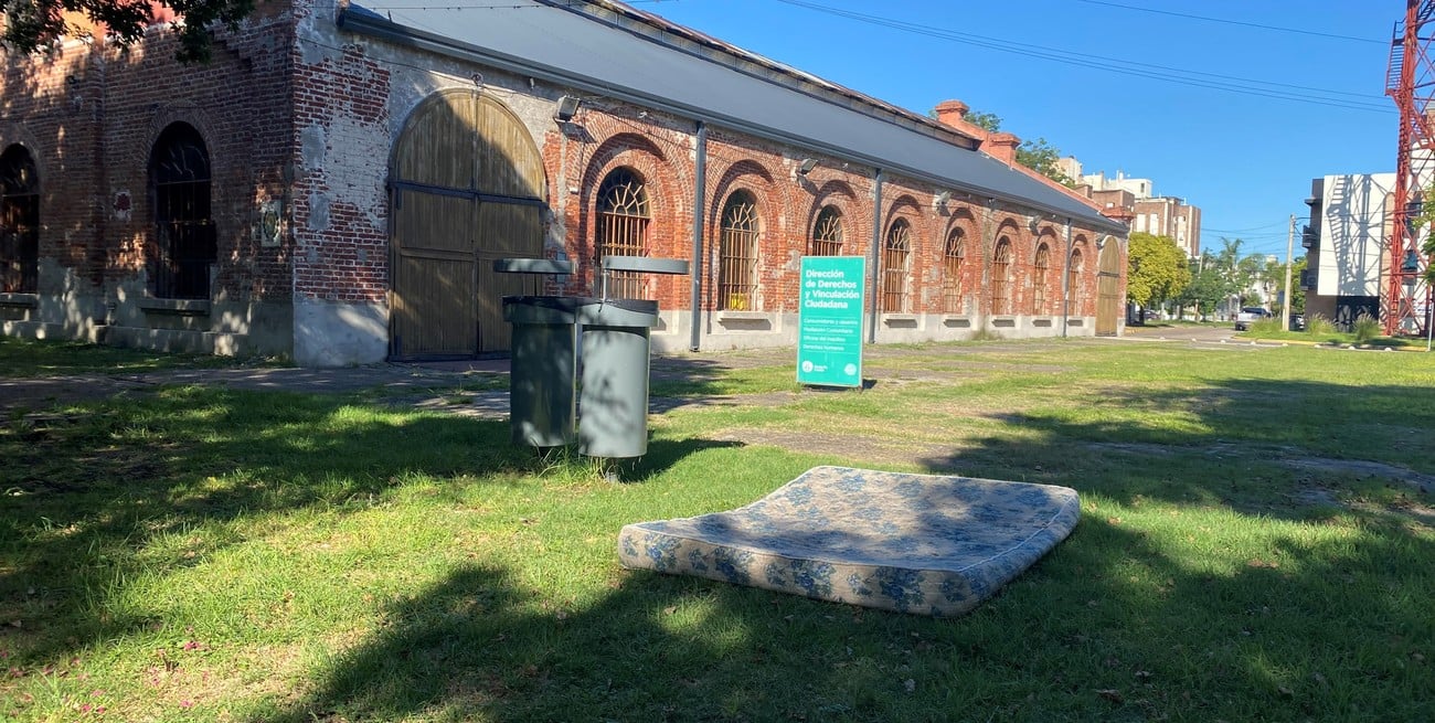 Suelen verse carpas, restos de comida y cenizas de alguna fogata. Ahora, la “novedad” es un colchón cerca de una oficina municipal.