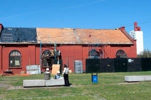 Esas obras comenzaron a mediados de agosto y ya se pueden notar las primeras tareas en el techo del viejo galpón. A pocos metros, el cartel que indica los detalles de los trabajos. La empresa adjudicataria es BR Construcciones SRL y el presupuesto es de $90.274.485.43.