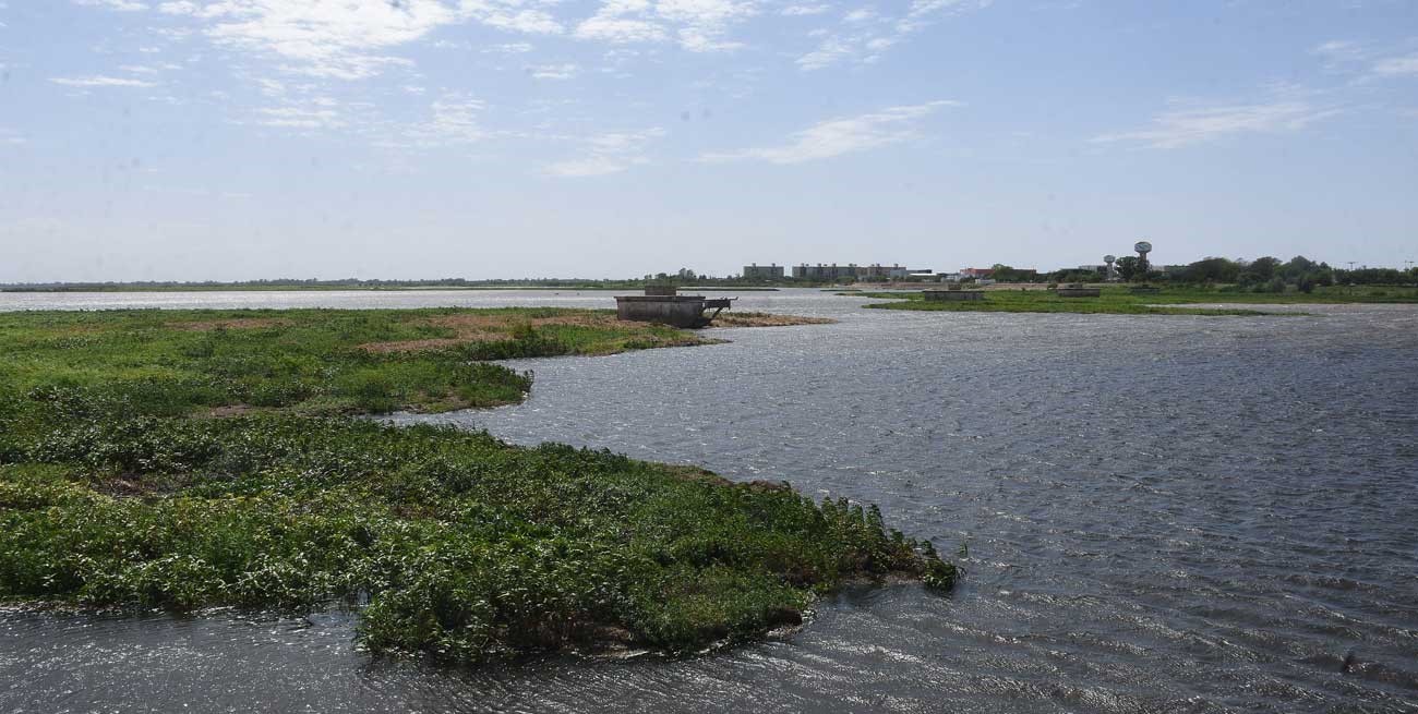 En pleno proceso de crecida del río Paraná, camalotes y demás flora del ecosistema de la región llega de aguas arriba y se agolpa en torno a los pilotes del puente ferrocarril. Las últimas imágenes mostraban que apenas quedan dos espacios para pasar hacia el norte de la laguna.