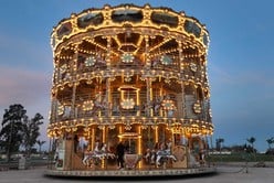 Como contó días atrás El Litoral, en Puerto General San Martín se instaló un carrusel gigante, con tres pisos y capacidad para albergar en simultáneo a 175 personas. La inmensa atracción ostenta 6.500 lámparas, un ascensor, nueve carrozas y 104 caballos móviles.