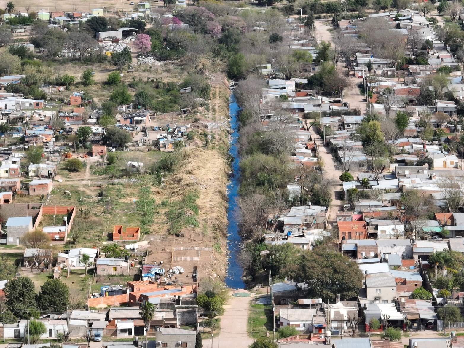 1 / 7 Así se ve desde el drone de El Litoral el zanjón que genera un sinfín de problemas a los vecinos. Foto: Fernando Nicola