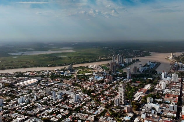 La ciudad de Santa Fe, la zona portuaria y el río. Foto: Fernando Nicola