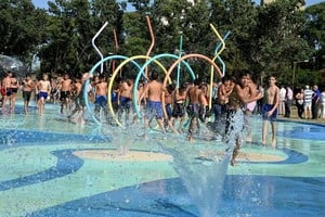 Es una nueva área que se incluyó en la obra de renovación del parque, que realiza el municipio. Hay juegos para que los chicos puedan disfrutar del agua en el verano.