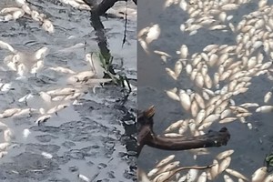 Algunos peces buscaban oxígeno mientras que otros estaban muertos. Crédito: Fernando Nicola