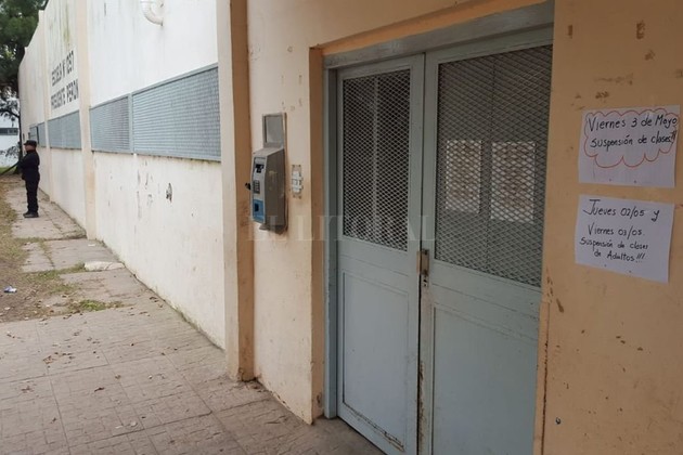 El Litoral Cerrada. Así estaba la escuela Perón este último viernes, bajo la desafiante mirada de los temerarios que acechan la zona. Un policía está de guardia en las afueras.El Litoral Cerrada. Así estaba la escuela Perón este último viernes, bajo la desafiante mirada de los temerarios que acechan la zona. Un policía está de guardia en las afueras.