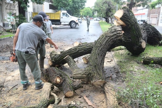 Sin importantes anegamientos de calles por acumulación de agua, algunas sectores de la capital santafesina si se han visto afectados por la caída de árboles o ramas. Es el caso de las esquinas de avenida Aristóbulo del Valle y Pedro Zenteno y la de Alberdi y Ruperto Godoy.