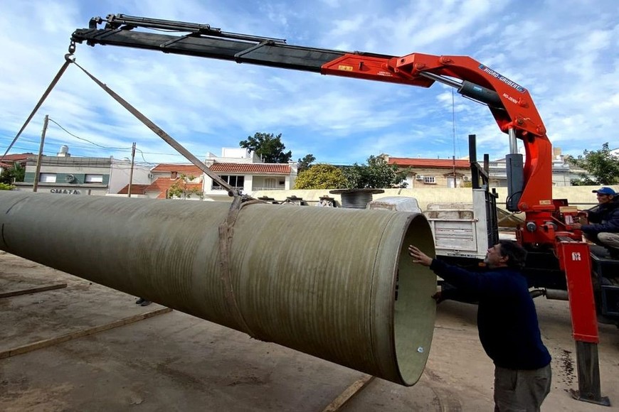La semana pasada se recibió la primera tanda de caños para reemplazar el tramo previsto de 60 metros. Foto: Gentileza Assa
