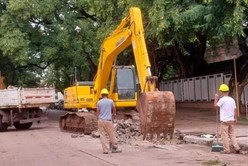 Lo que comenzó hace una semana con la apertura de un socavón que preocupó a las autoridades de la Escuela Técnica N° 478 "Dr. Nicolás Avellaneda" (Calcena 955) ahora es una obra de grandes dimensiones que afecta la circulación por calle Laprida.