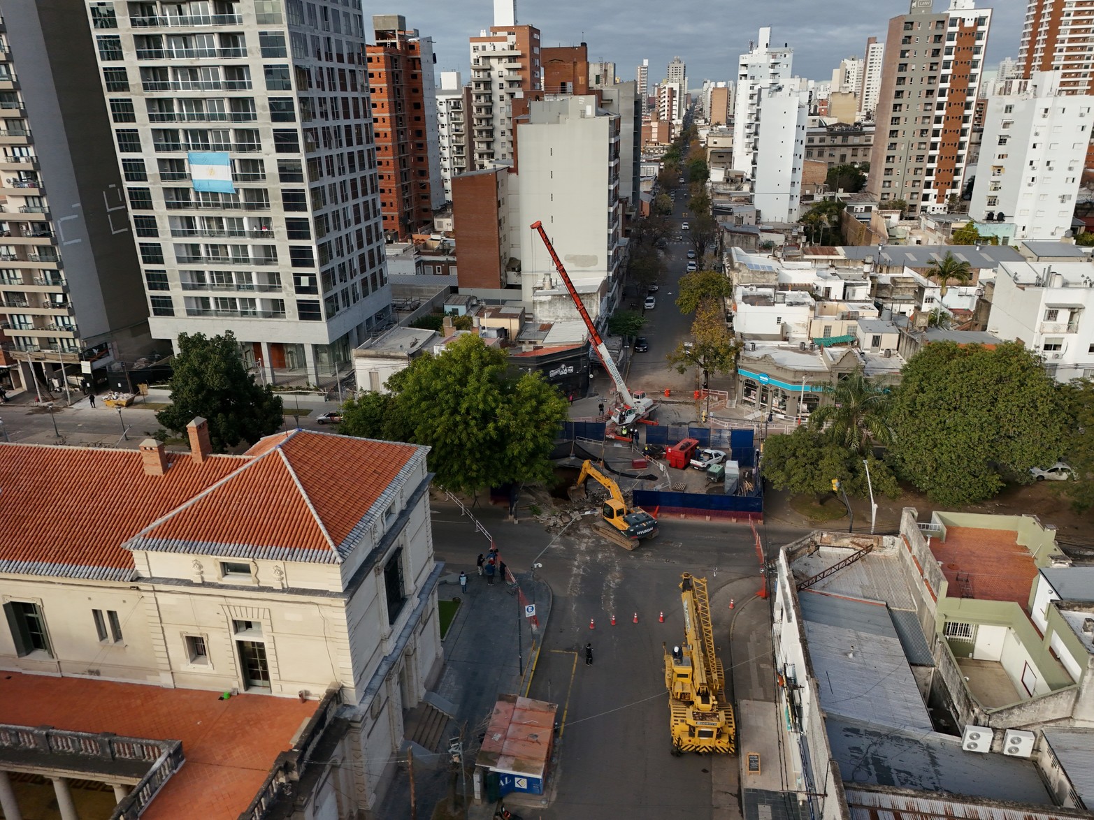 11 / 11 Comenzó la obra de reparación del socavón de Pellegrini y 9 de Julio. Foto: Guillermo Di Salvatore