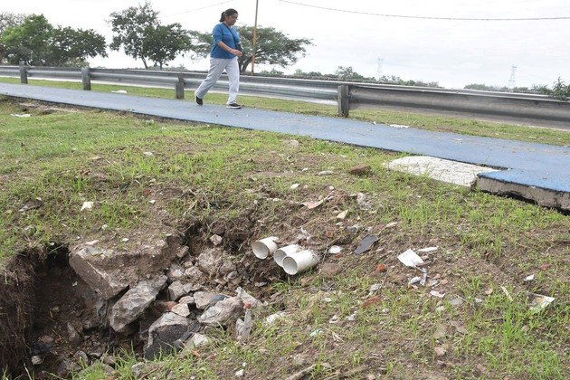 En los primeros días de mayo, la Municipalidad de Santa Fe intervino en la zona del Parque del Sur para darle una solución de forma provisoria al socavón de grandes dimensiones que se había generado a un costado del circuito aeróbico, ubicado en el talud oeste de la avenida Mar Argentino, frente a la cancha de hockey del Club Náutico El Quillá.