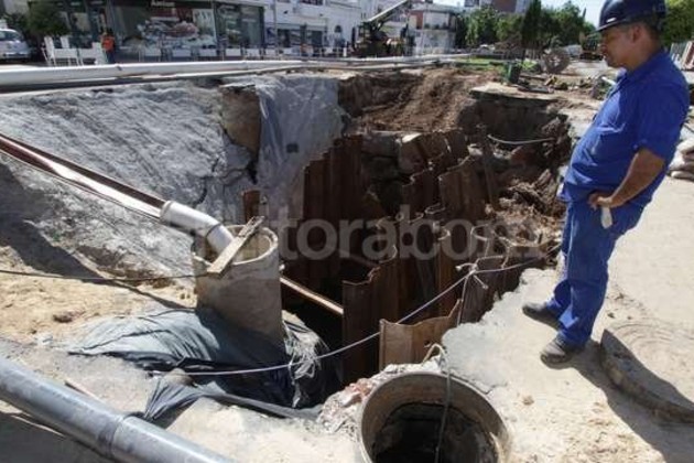 El otro problema: la altura de las napas, que subieron tras las lluvias, aunque los trabajos se continuaron a un nivel más lento. “El nivel de éstas es preocupante”, admitió el funcionario. Por ello, se hicieron cuatro perforaciones de donde salen caños que sacan el agua de las napas hacia una cámara ubicada en la esquina de 4 de enero. “Necesitamos bajar el nivel de agua de las napas y de la cloaca para avanzar hacia la solución”.