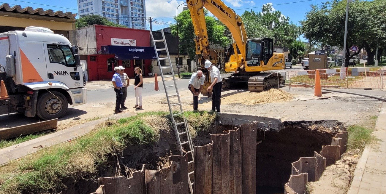 Ya se ejecutaron las perforaciones para la depresión de napas y se están colocando los sistemas de tablestacado para permitir las tareas a profundidad. El tramo a reemplazar se iniciará desde la boca de registro ubicada sobre la calzada de Luciano Molinas hacia el Sur.