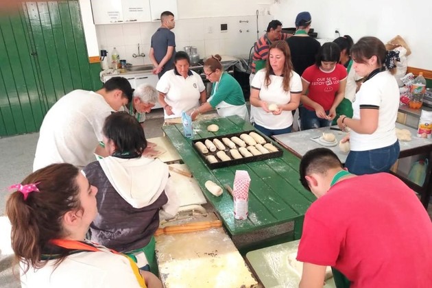 Uno de los talleres de Cáritas Santa Fe, en este caso, de panificación, desarrollado en la Parroquia Virgen de los Pobres del Complejo Educativo Ceferino Namuncurá. Foto: Gentileza.