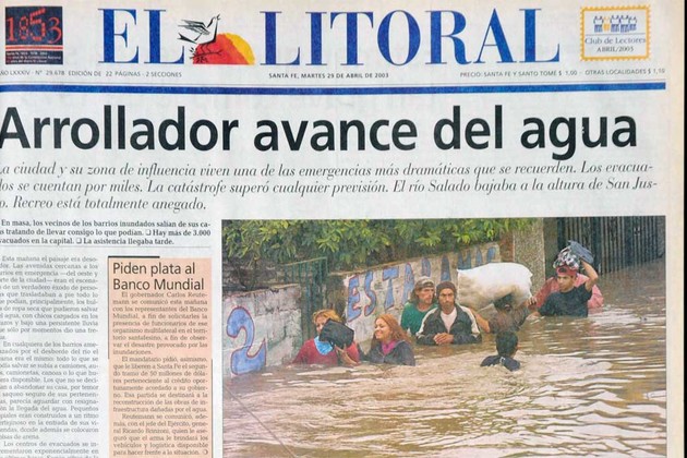 La peor tragedia que vivió la ciudad de Santa Fe reflejada en las páginas de El Litoral con una cobertura digna del medio centenario de la capital provincial. Información, mapas, análisis y ayuda para la ciudadanía en tiempos de crisis. Desde el 23 de abril hasta el 5 de mayo. Un recorrido por las tapas del vespertino que marcaron el pulso de la ciudad ante la inundación de 2003.