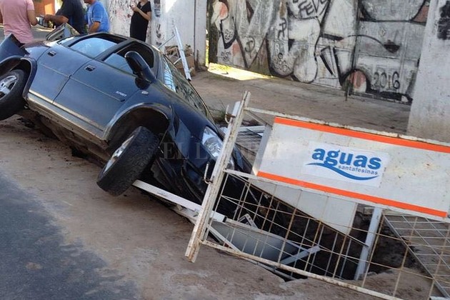 Un taxi terminó dentro de un corralito de Aguas Santafesinas (Assa). El accidente se produjo este sábado por la tarde en la zona de las calles Saavedra y Salta, detrás del Hospital Cullen, donde un Chevrolet Corsa cayó de costado en el pozo. Se desconoce por el momento cómo se produjo el siniestro, aunque afortunadamente el chofer (que venía sin pasajeros) salió ileso. Mientras, desde Assa manifestaron que ese pozo fue realizado ayer y que estaba debidamente señalizado. No obstante, agregaron que se iban a incorporar más carteles de advertencia.