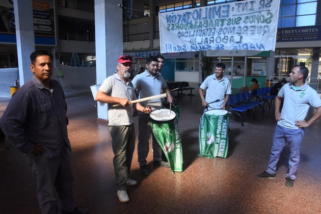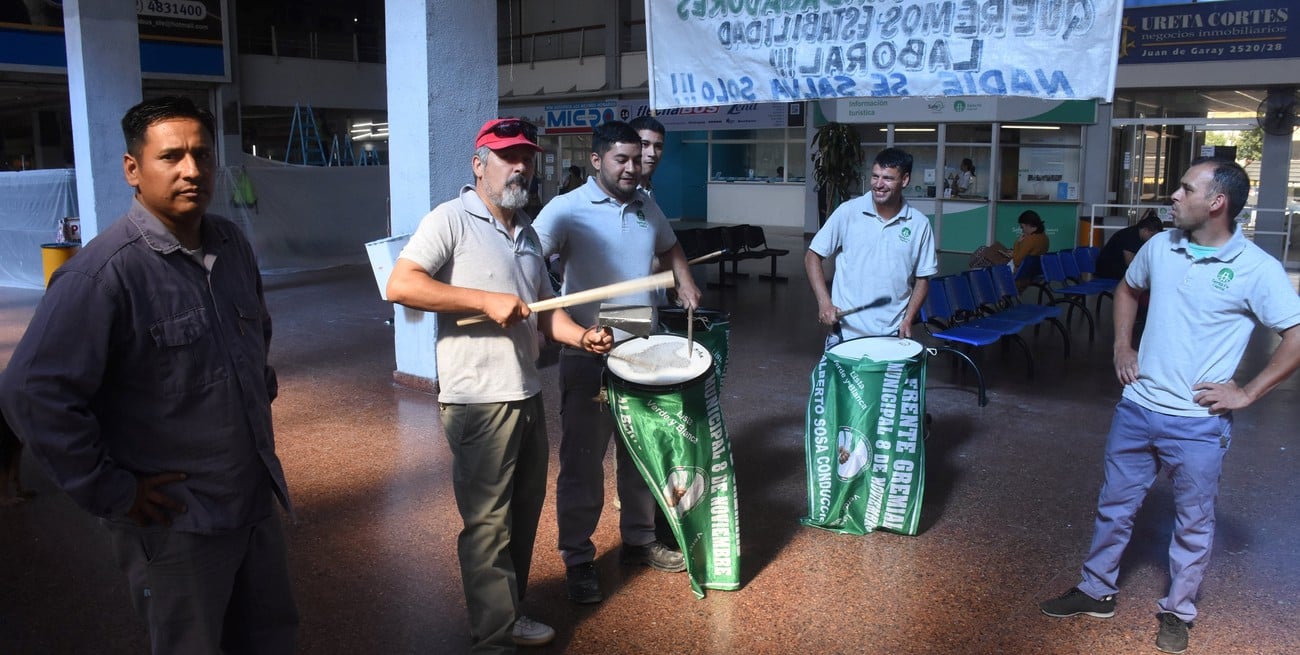 Trabajadores de la Terminal de Ómnibus “Manuel Belgrano” protagonizaron este jueves por la mañana una ruidosa protesta en el hall central del edificio, en reclamo del pase a planta permanente como empleados de la Municipalidad de Santa Fe, entre otras condiciones laborales. Cumplen funciones de mantenimiento, limpieza, playa de estacionamiento y administración. La manifestación fue con bombos y pancartas, y sumó mayor caos al ya existente, por el avance de las obras de remodelación en el lugar.