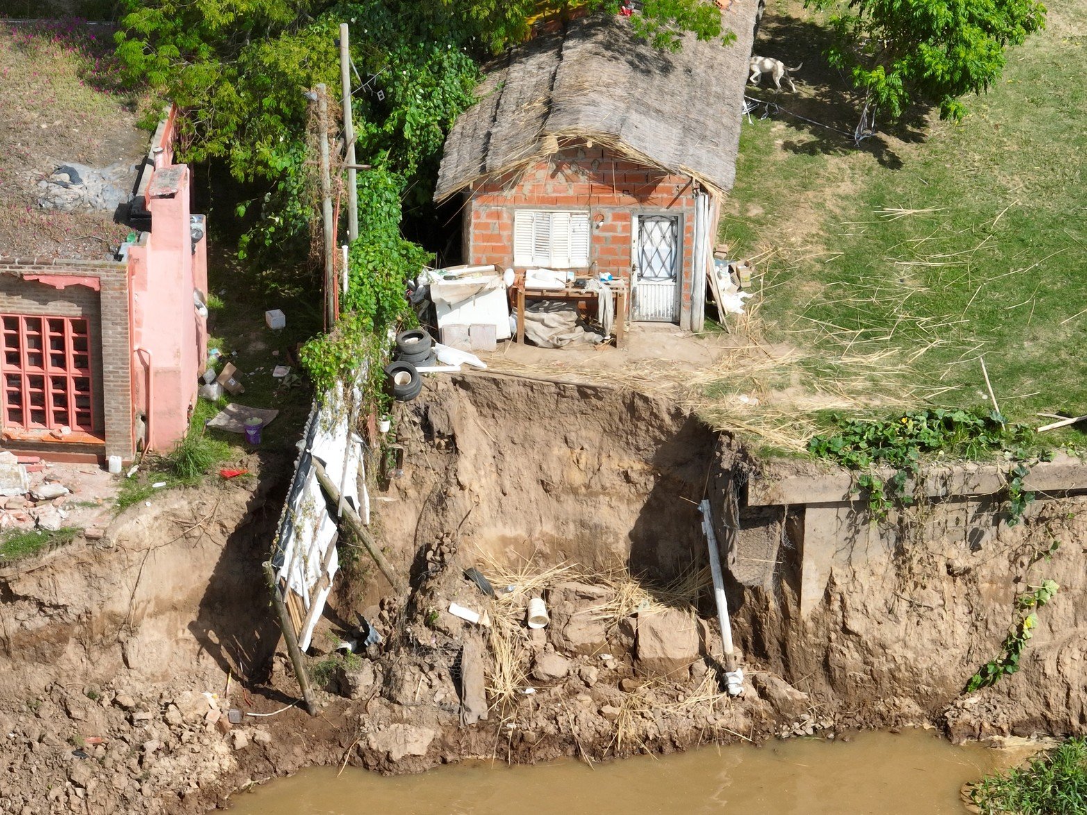 3 / 11 Desde el pasado fin de semana se empezaron a registrar importantes desmoronamientos sobre la barranca de Colastiné Norte, en la Defensa Garello. A causa de estos movimientos naturales, que se dieron por el repentino descenso del río Colastiné, al menos tres casas sufrieron daños estructurales. Foto: Fernando Nicola
