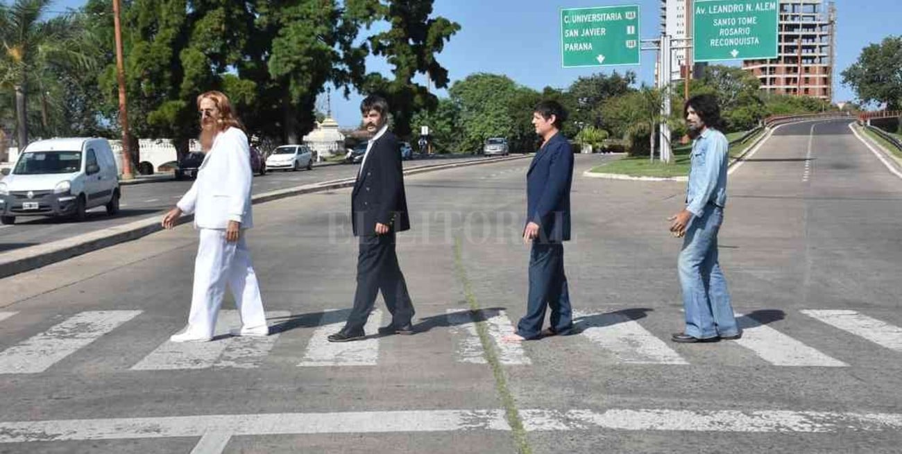 Uno de los puntos en los que se llevó a cabo dicha intervención urbana fue el Puente Colgante, símbolo de la ciudad. Hasta allí concurrieron la directora provincial de Seguridad Vial, Antonela Cerutti, y el subsecretario del área, Osvaldo Aymo. El dato curioso fue que los funcionarios estuvieron acompañados por cuatro populares personajes: "The Beatles", quienes recrearon el icónico cruce peatonal de la portada de su disco Abbey Road. Esta vez fue junto al Puente Colgante, sobre el cruce peatonal que une la Costanera Oeste con el monumento al Brigadier E. López. En verdad se trata de cuatro actores santafesinos que disfrazados de John Lennon, Paul McCartney, George Harrison y Ringo Starr, se sumaron a la campaña. Los cuatro Beatles fueron interpretados por Ruy Gatti, Francisco Chiarelli, Juan Manuel Abarca y Juan Manuel López. Además se repartieron folletos con recomendaciones tanto para peatones como para conductores de vehículos (ver Cómo cuidar...).