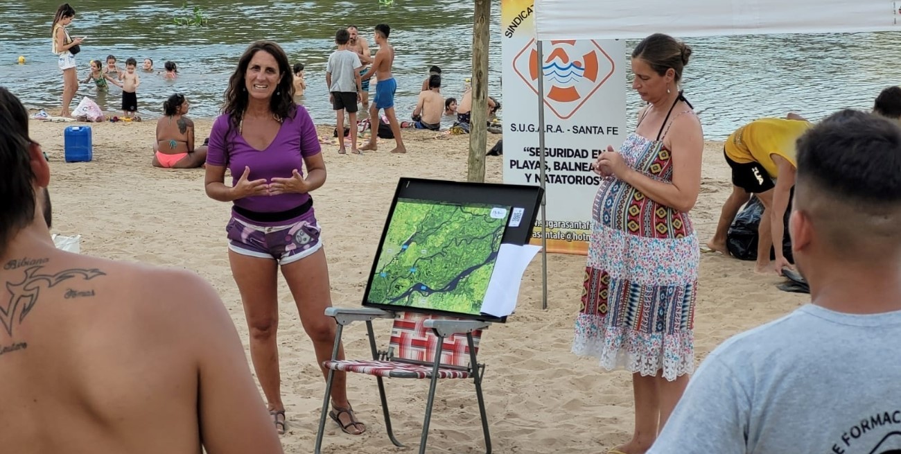 Desde hace algunos meses atrás, un grupo de investigadores del INA, CONICET-UNL, representantes de distintos organismos y guardavidas comenzó a darle forma a una novedosa propuesta que hoy es una realidad: el equipo intercambia información y luego brinda charlas libres y gratuitas en las playas santafesinas para contarle a los bañistas los secretos de la naturaleza del humedal en el que está enclavada la ciudad de Santa Fe.