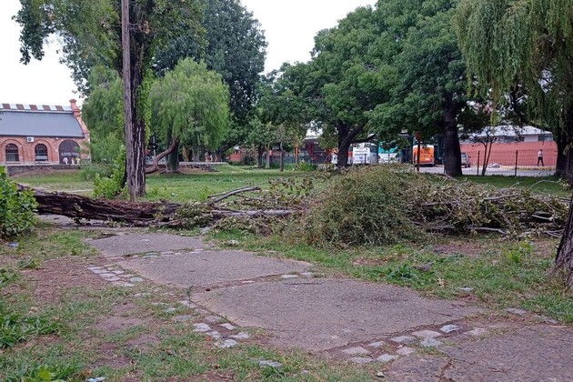 A casi una semana de este fenómeno climático, en la zona parquizada del Predio Ferial Municipal, frente a la parte de atrás de la terminal de ómnibus, todavía hay árboles y ramas grandes que obstaculizan el lugar para poder caminar.
