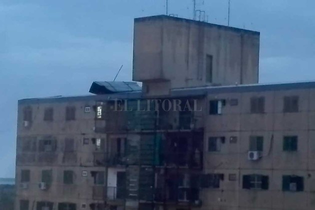 Un lector de El Litoral compartió imágenes de la voladura del techo de una de las torres de barrio El Pozo.
