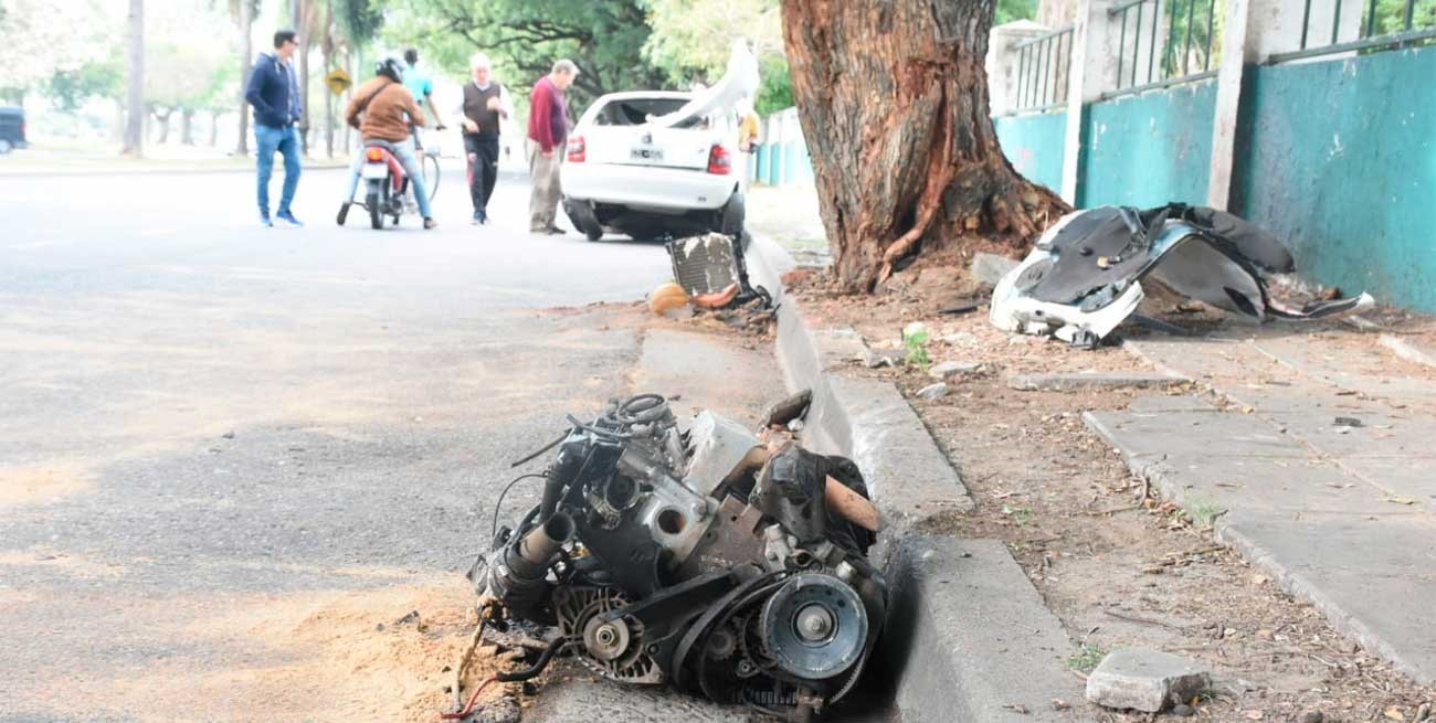 Las imágenes hablan por sí solas. Un Chevrolet Corsa totalmente destruido, cuyo motor terminó en la cinta asfáltica no indican otra cosa que el vehículo circulaba a gran velocidad.