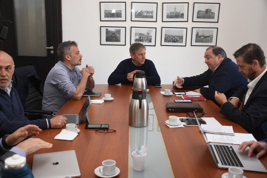 El registro gráfico es del 26 de septiembre. Fue una de las primeras reuniones de transición entre los equipos del intendente saliente desde diciembre, Emilio Jatón, y del entrante, Juan Pablo Poletti. Guillermo Di Salvatore