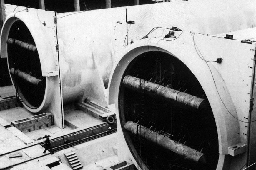 El 3 de febrero de 1962 se inician las obras con la presencia del presidente de la República, Arturo Frondizi. La firma Sailav tiene a su cargo la preparación de planos de detalle y dirección de las obras, mientras que las firmas Hochtief y Vianini, la construcción de los trabajos.