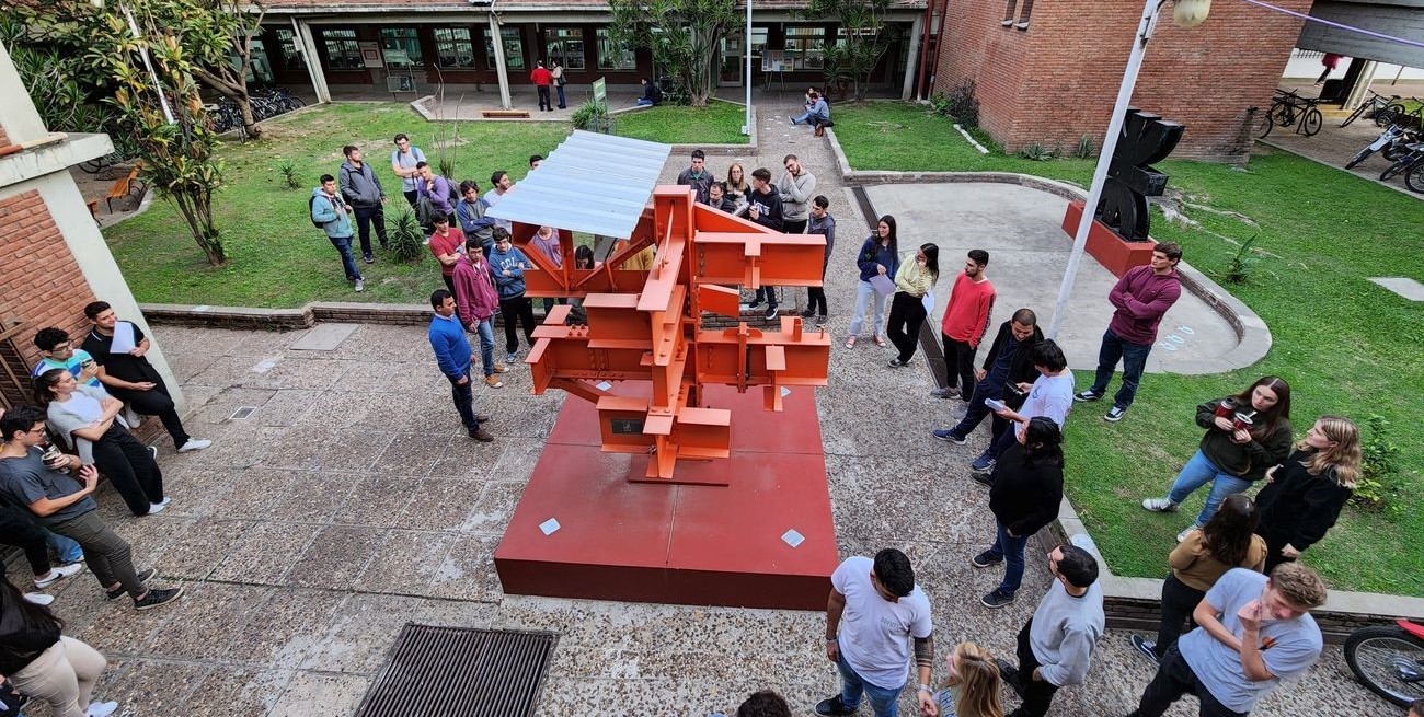 El ingeniero Rudy Grether, docente e investigador de la UTN Santa Fe, explicó que se trata de una escultura-estructura que consolida soluciones de conexiones abulonadas y soldadas más típicas para las estructuras de acero. "Es un elemento que permite observar e interactuar de forma directa y en escala real, con las soluciones clásicas para el diseño de conexiones en estructuras de acero, que es uno de los puntos clave para lograr un diseño apropiado de una estructura", sostuvo.