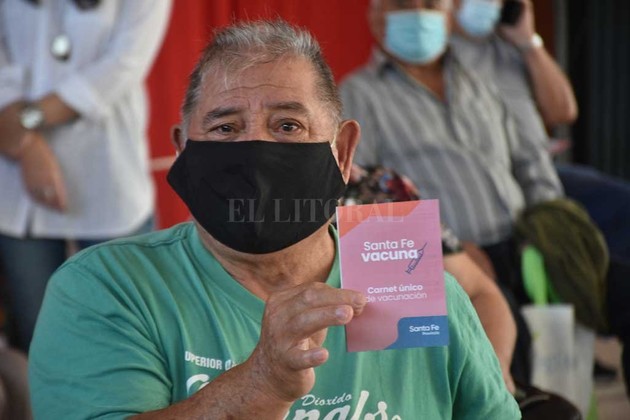A su lado, Manuel, jubilado ferroviario de 72 años, no ahorra palabras de agradecimiento "para el Presidente y para toda la gente de Salud", mientras exhibe para la foto el preciado carné. Y agradece a los medios por toda la información; también a este diario porque él y su esposa se inscribieron desde la web de El Litoral.