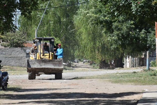 Las máquinas pesadas andan por todo el barrio. Construyen veredas, tendido eléctrico para las viviendas, cloacas, desagües, agua potable y cordón cuneta, entre otras. Los perros yiran desconcertados por las calles de tierra.