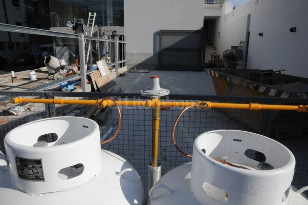La colocación de ocho garrafas de 200 kilos en una construcción del centro despertó el alerta. La Municipalidad exigió que resguarden el sector con una pared.