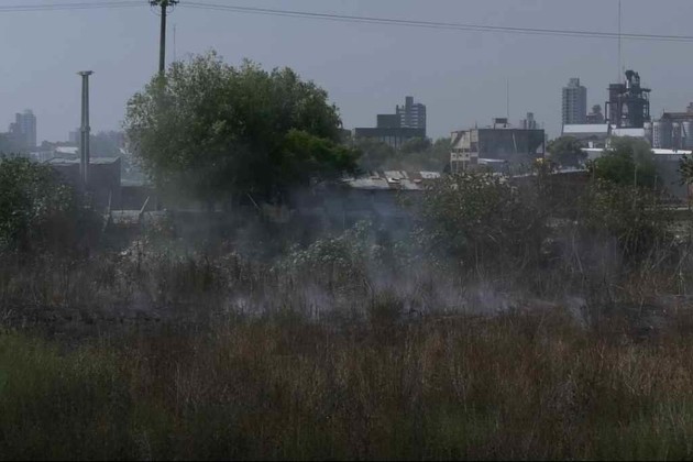Vecinos de la Vuelta del Surubí tuvieron que salir a apagar el fuego que se generó en los pastizales que costean el barrio para que no llegue a sus casas.