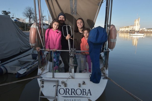 Con las primeras luces del día, Juan La Bianca asoma su sonrisa desde el interior del barco y dice: "Bienvenidos". Junto a Natalia Cecotti, su compañera, y sus dos pequeñas hijas, Malena (6) y Regina (4), están amarrados desde el viernes pasado a bordo del velero "Torroba" (Victory 34) en el club Marinas Puerto Santa Fe. Llegaron a la ciudad por el río Paraná tras pernoctar varias noches en el paisaje de las islas. Vienen viajando río arriba desde Rosario, a donde tienen su amarra permanente en el Club de Velas. Y decidieron llegar a "la ciudad de Garay" impulsados por el viento, lejos del bullicio y de las salas de cine atestadas de gente. Quieren disfrutar de unas vacaciones de invierno diferentes. Viven un sueño. Uno más.