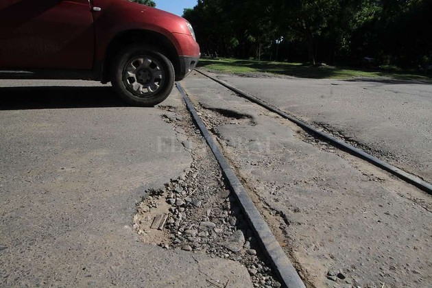 La carpeta asfáltica está muy deteriorada en ese tramo, lo que genera inconvenientes en la circulación. Hay tres corralitos, dos de la empresa Aguas Santafesinas que llevan varios meses. La plaza Chaplin desapareció entre la maleza y el barro.