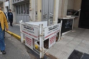 Por una conexión de gas en un edificio, se rompió la vereda en San Jerónimo al 2000 y desde hace más de un mes se dejó abierto el pozo, obligando a los peatones a bajar a la calle para seguir su camino.
