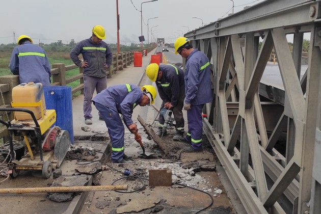 Vialidad Nacional continúa con la supervisión y control de los avances de la reparación del Puente Carretero de la RN 11. Actualmente las tareas y acciones se centralizan en el apoyo deteriorado con el tablero descendido, donde se ubica el puente metálico de emergencia.