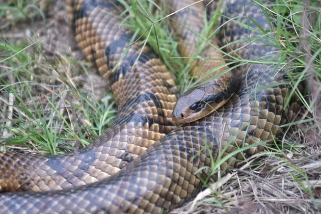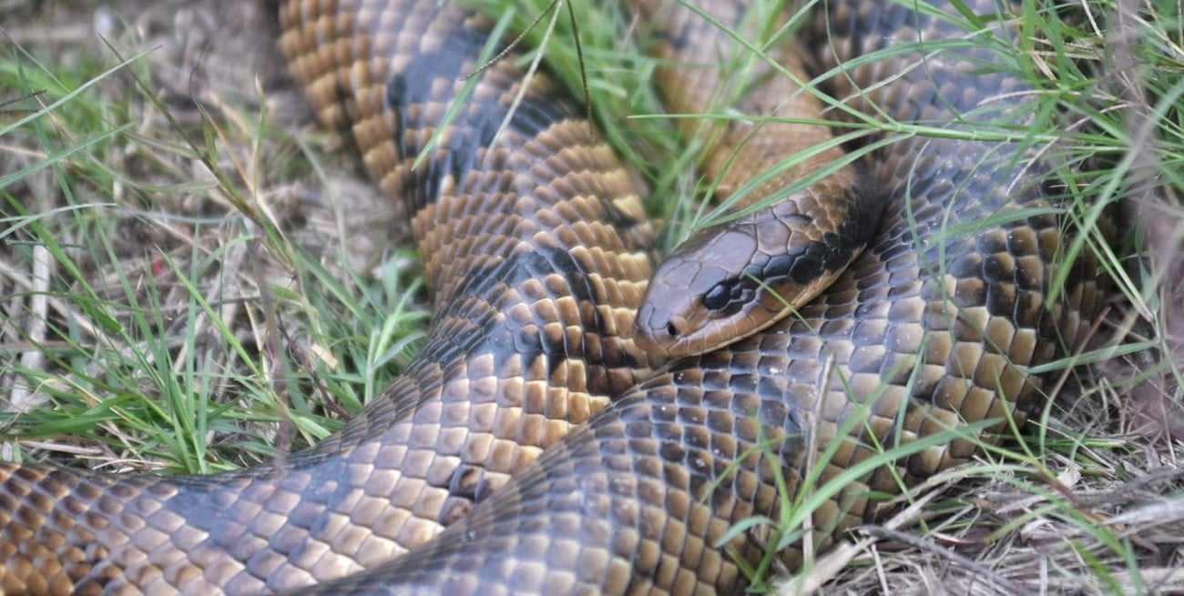 Se trata de dos ejemplares de Ñacaniná (Hydrodynastes gigas), un tipo de serpiente que habita principalmente en ambientes acuáticos.