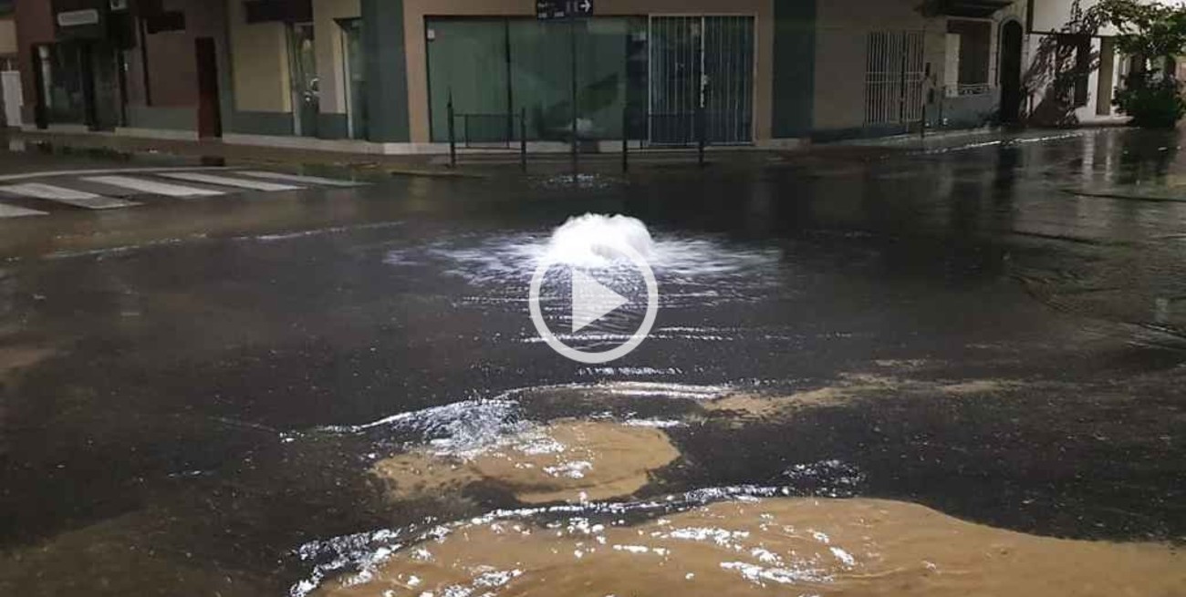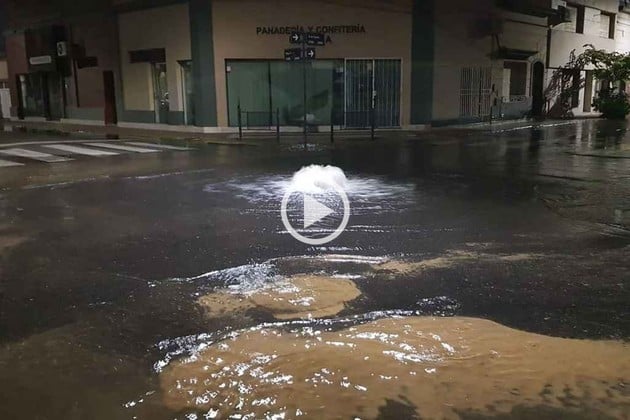 Es que en la esquina de 4 de Enero y Eva Perón se produjo un inconveniente en las cañerías y comenzó a brotar agua de la tapa de una alcantarilla.