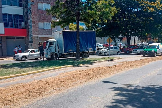 Como si fuese poco, se armó otro atolladero cuando un camión pinchó una de sus ruedas cuando transitaba por calle Cruz Roja Argentina.