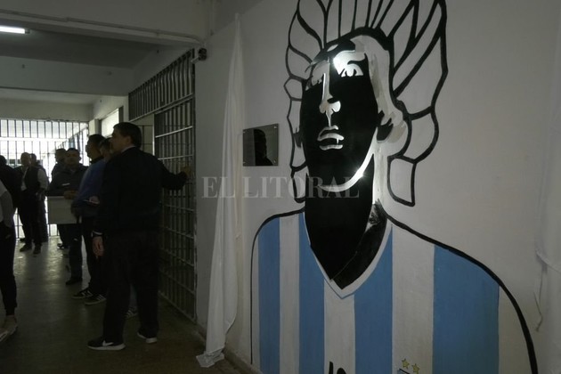 “La idea es transmitir un mensaje, es decir, dejar una obra de arte importante, que tiene un simbolismo muy fácil y directo para la cantidad de muchachos que están acá adentro con la representación del Diego que es un ídolo popular, del deporte, una persona que tuvo muchísimas virtudes y también defectos pero que sobrellevó toda su vida y creemos que es una alegría y un incentivo para los muchachos que están acá”, expresó Jaquelina Balangione, defensora provincial.