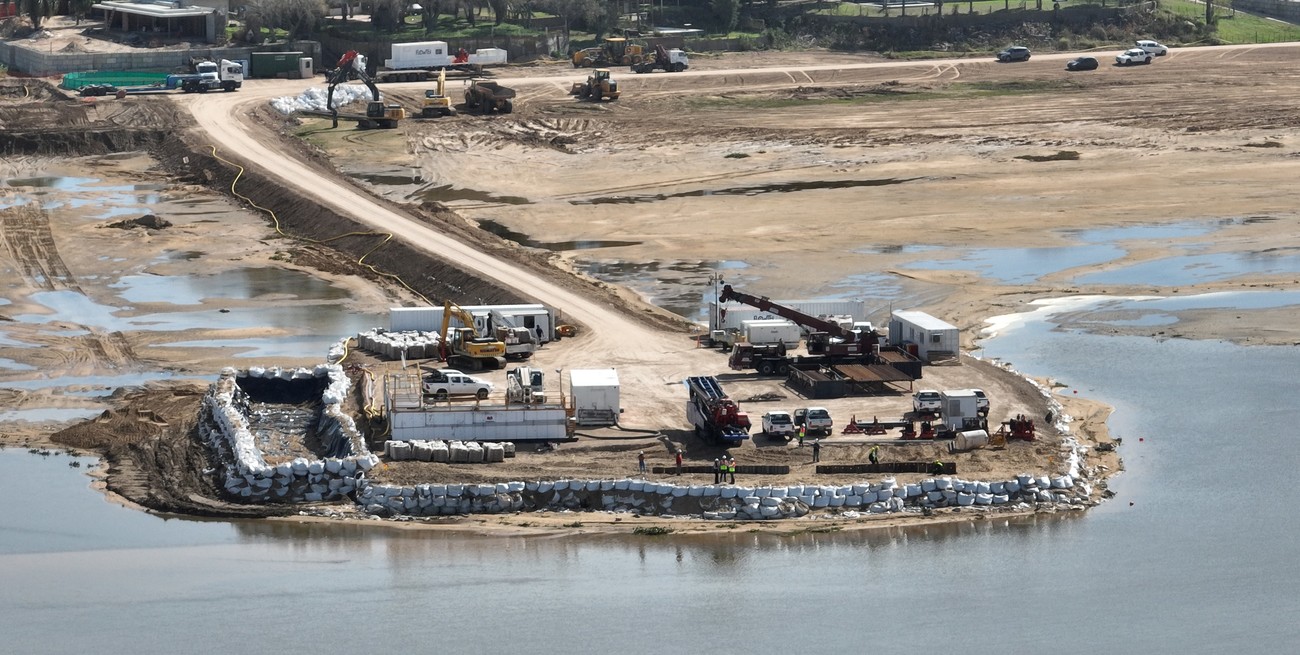 A través del drone de El Litoral se captaron imágenes del obrador ubicado en la orilla oeste de la Laguna Setúbal.