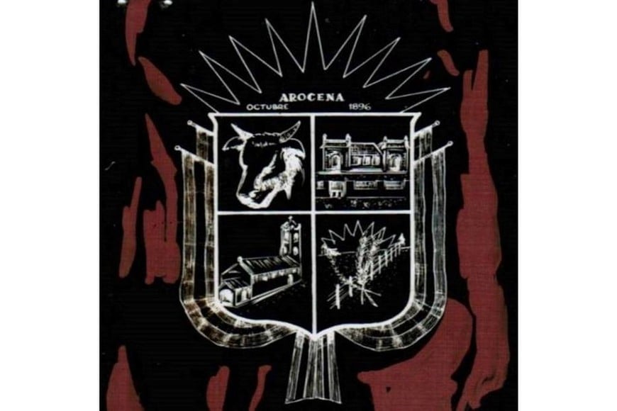 Escudo. La imagen de la estancia forma parte del escudo de Arocena. Crédito: Archivo