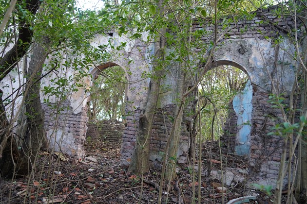 Escondida. Entre ramas que crecen desde las paredes asoman los restos de la estancia. Crédito: Fernando Nicola