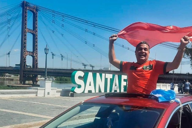 A más de 9 mil kilómetros de Marruecos, en la ciudad de Santa Fe se produjo un solitario pero divertido festejo de un marroquí instalado en la capital provincial. Se trata de Youssef Boukhriss, quien está viviendo por estos lares hace dos décadas y no perdió la oportunidad para celebrar en el lugar más emblemático: la Costanera con el Puente Colgante de fondo.