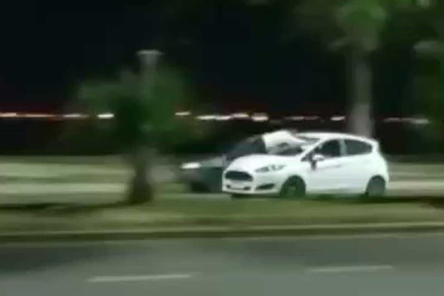 Como si fuese una historia en “loop”, a través del WhatsApp del diario enviaron un video que muestra un vehículo circulando a gran velocidad con lo llamativo de un individuo sobre el capó del auto.