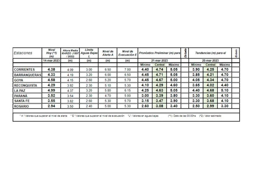 Para el puerto santafesino, el organismo prevé un nivel de 3,47 mts para el 21 de marzo; mientras que para el 28 de este mes, subiría a 3,68 mts.
