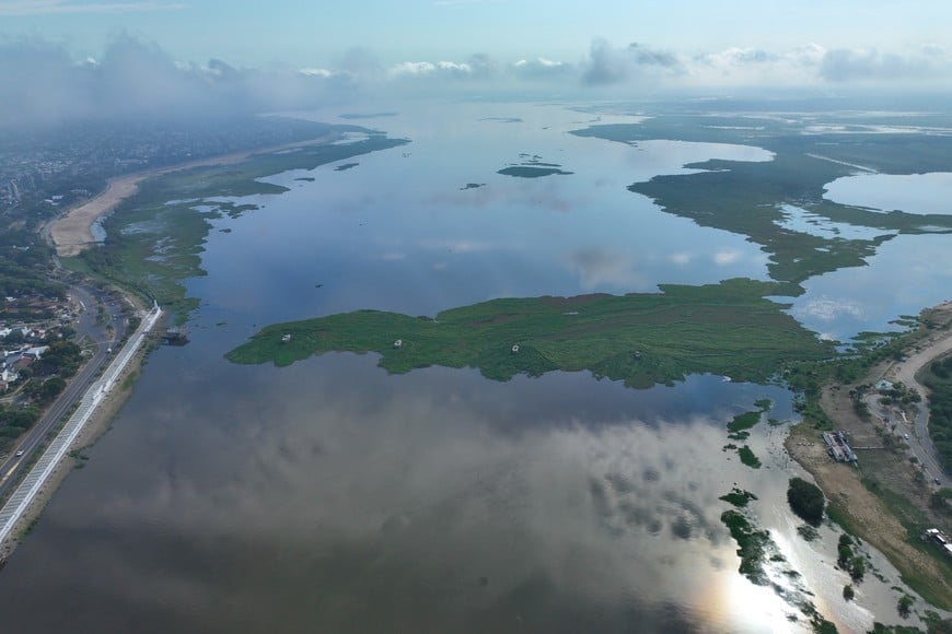 Esa situación se replicó esta semana en otro fenómeno de repunte. Mientras la Prefectura Naval Argentina informó este jueves una altura de 3,58 mts, este nuevo embalsado prácticamente “tapió” la Setúbal. Durante la tarde del miércoles, la vegetación casi bloqueó el paso hacia el norte del espejo de agua.