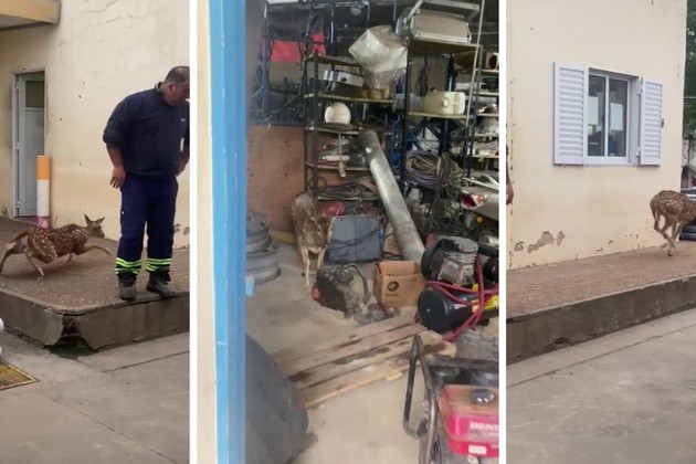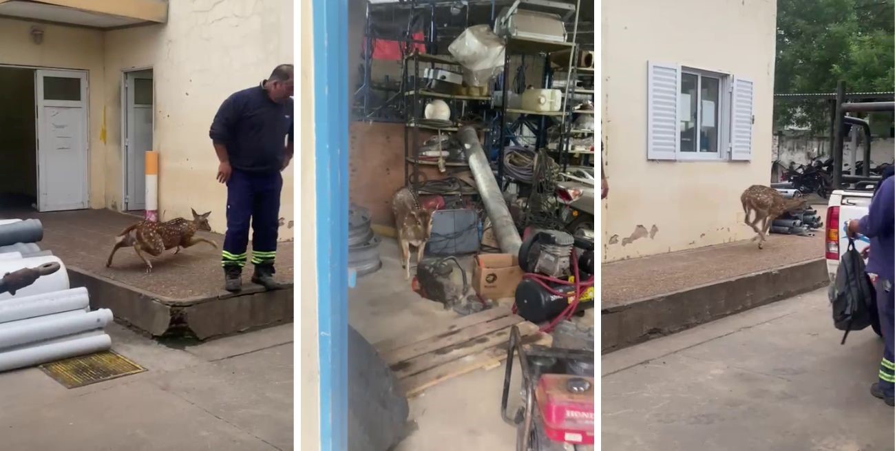 Así lo muestra un video que circula en redes sociales donde se lo ve al ciervo dentro de instalaciones de Aguas Santafesinas en el citado barrio capitalino. Por lo que pudo saber El Litoral, el animal en la desesperación por encontrar un refugio ingresó al sector conocido como “Almacenes”, un depósito donde se guardan materiales de reparación como caños, válvulas, abrazaderas, que está ubicado por calle Sarmiento.